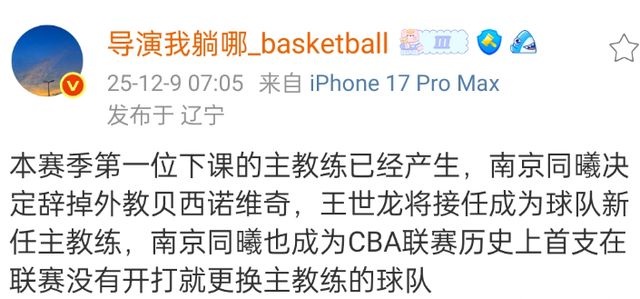 正式确定!CBA新赛季第一位下课主帅,冲冠球队更换教练