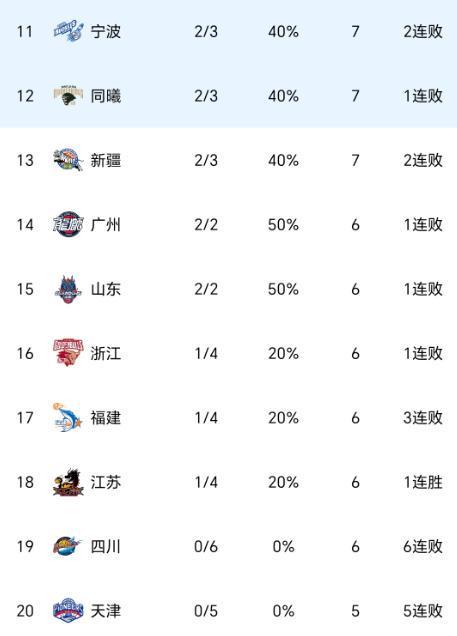 随着新疆惨败青岛,深圳送四川6连败,CBA积分榜:2大黑马升前四
