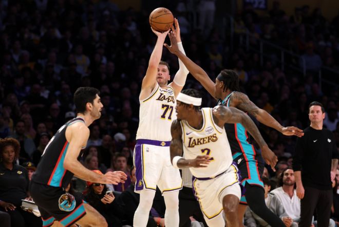 而湖人能在关键时刻如此可靠,除了詹姆斯的强势表现外,另一个关键因素是球队另一核心东契奇的存在。本赛季东契奇场均可以轰下33.6分8.0篮板8.7助攻,三分命中率32.0%。赛季前四场,东契奇总得分高达165分,超越科比(146分)和韦斯特(154分),成为湖人队史赛季前四场得分最高的球员。