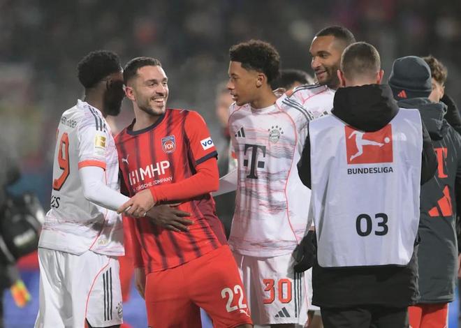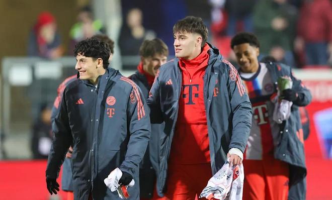 据《图片报》报道,在本赛季最后一轮德甲联赛中,拜仁慕尼黑客场4-0战胜海登海姆。然而,相比比分结果,更引人关注的是拜仁在这场正式比赛中出现的罕见人员状况。由于多名主力缺阵,拜仁不得不在替补席上大量启用青年球员,这在俱乐部近年来的正式比赛中极为少见。本场比赛,拜仁主教练孔帕尼一共无法使用九名球员。门将诺伊尔因大腿肌纤维撕裂缺阵,基米希受到踝关节问题困扰,金玟哉膝盖不适,莱默尔因累计黄牌停赛无法出场。亚历山大-帕夫洛维奇、比朔夫和博埃因生病缺席,穆西亚拉仍在腓骨骨折后的恢复训练中,而尼古拉-雅克松则随塞内加尔队参加非洲杯。在这种情况下,拜仁不得不在比赛日大名单中补充多名青年队球员,其中部分人此前从未在正式比赛中进入过一线队阵容。这也直接造就了一张“独一无二”的拜仁替补席。除替补门将乌尔赖希,以及格纳布里、阿方索-戴维斯外,替补席上还包括六名青年才俊。卡夏诺-基亚拉(16岁)16岁的中后卫卡夏诺-基亚拉被视为拜仁青训体系中最出色的防线新星之一,本赛季主要效力于U19和地区联赛。本场比赛第91分钟,他替补登场,完成个人正式比赛及德甲首秀,出场时年仅16岁344天。近期英国媒体报道称,曼城和切尔西均对这名合同至2027年的后防新秀表示关注,拜仁方面则希望通过续约和出场机会将其长期留在队中。桑托斯-戴伯尔(18岁)18岁的中场球员桑托斯-戴伯尔在第72分钟替补出场,同样完成了在孔帕尼执教下的正式比赛首秀。这位葡萄牙U19国脚平时效力于拜仁U19,因稳定性出众,近几个月来一直定期随一线队训练。威兹德姆-迈克(17岁)17岁的边路球员威兹德姆-迈克则是这批青年替补中拥有最多一线队经验的球员。本场第91分钟登场,已是他第四次代表拜仁一线队出场,不过目前仍主要在U19和地区联赛比赛。他因极强的爆发力和冲击力,被视为俱乐部的重要未来希望。费利佩-查韦斯(18岁)18岁的费利佩-查韦斯拥有秘鲁父亲和德国母亲,是一名进攻威胁突出的中场球员,近期也多次参加一线队训练。虽然他仍在等待代表拜仁完成正式比赛首秀,但早在10月便已完成秘鲁国家队首秀。本场比赛,他首次进入德甲比赛日大名单,但未获得出场时间。哈维尔-费尔南德斯(18岁)同为18岁的哈维尔-费尔南德斯出自塞尔塔和马德里竞技青训体系,2023年加盟拜仁青训。他以技术细腻、比赛阅读能力强和斗志顽强著称。多次严重伤病曾影响其发展,最近一次是在2月遭遇半月板伤势。12月初复出后,他希望通过地区联赛逐步找回状态,并尽快迎来期待已久的一线队首秀。本场入选对阵海登海姆的大名单,被视为积极信号。德尼兹-奥弗利(18岁)此外,左后卫德尼兹-奥弗利也首次进入德甲比赛日大名单。这位土耳其U19国脚近期凭借在U19的稳定表现,逐渐获得更多随一线队训练的机会。在伤病和缺阵集中爆发的背景下,这场比赛不仅是拜仁赛季收官战的一场大胜,也成为多名青年球员踏上职业舞台的重要节点。