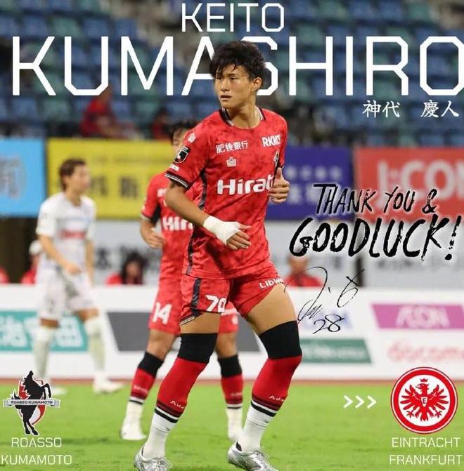 夏季转会窗在堂安律来到法兰克福之后,在本赛季打出了出色的表现,21场比赛贡献了6个进球和5个助攻,确实是这支球队的大腿,也是主帅非常信任的攻击线球员。在德甲中、他可以展现出自己灵活的属性和细腻的技巧,边路过人制造空间都很有特点,这也是让外界对日本足球有了更加深刻认识。当然在此之前包括长谷部诚、镰田大地、远藤航等选手都已经在德甲有过成功经历,就此、德国对日本球员的信任度也是来到了一个新高度。据悉,法兰克福在尝到了堂安律的甜头之后,继续挖掘日本人才的,其中18岁的前锋熊本深红的神代庆人,正式转会到此开启生涯新篇的。神代庆人是从熊本深红离开加盟德甲劲旅的,在新年开始之后就会正式官宣。不过,他年龄相对比较小,再加上对德国足球体系不够适应,因此这法兰克福会率先把他安排到U21梯队、来逐步熟悉训练证明自己。神代庆人虽然暂时不会出现在主力队,不过他却会在明年的梯队春季联赛,拿到机会,届时个人的能力如何、潜力是不是能够达到主力队水准,也会有答案。16岁时神代庆人就在J2联赛完成了首秀,当时就有不少的专业人士对他非常青睐,称其是日本足球明日新星。而在过去两个赛季中,他总共出战40场联赛,打进13个进球助攻2次,整体上发挥非常不错。而早在14岁时,神代庆人就已经完成日本梯队的首秀,在U16青年队为球队出战6次3次破门的,是效率颇高。当然,除了神代庆人外,法兰克福前几日还官宣了从尤尔加登签下日本边后卫小杉启太的消息,这名19岁的选手也将从新年之后正式成为这支劲旅新防守人。相比神代庆人,小杉启太个人经历成熟,在去年年初他就已经从青训俱乐部、转会到了尤尔加登,在这支俱乐部成为了主力队员。转会以来,他在瑞典超级联赛、瑞典杯和欧协联中出战了62场比赛之多,打进5个进球贡献7个助攻,虽然只有19岁,不过却名气很大的。其中,在2024/25赛季的欧协联比赛,他帮助尤尔加登闯入到了半决赛。应当说是上届发挥最出色的几名球员之一,只是遗憾的被冠军切尔西淘汰,不然的话很有机会创造历史。他已经在日本的U17、U23国家队效力过,还曾经在日本U17参加过同年龄组世界杯,个人的经验非常丰富的。因此,俱乐部对他信任,神代庆人虽会去到青年队,不过小杉启太有机会从主力开打,这是他的机会。