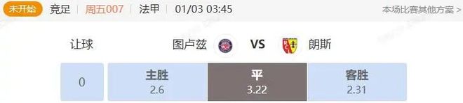 目前市场给到平手,朗斯作为领头羊没有任何数据优势,两队防守都极具韧性,很可能交出一场平局各取一分。