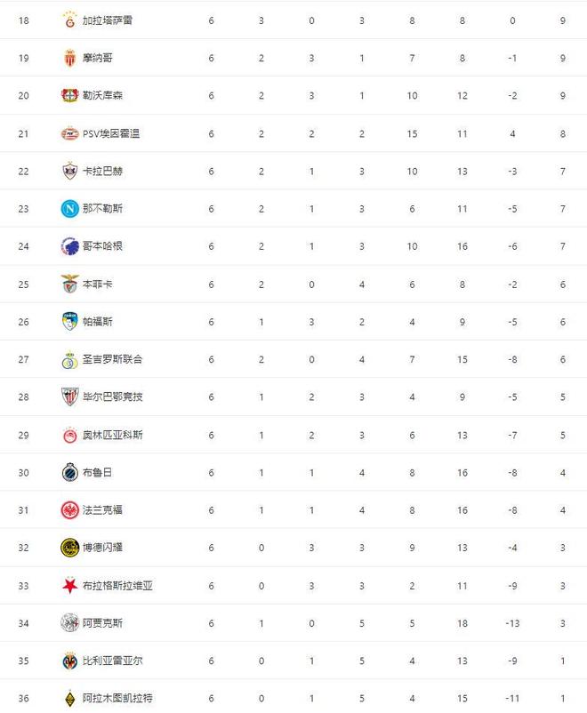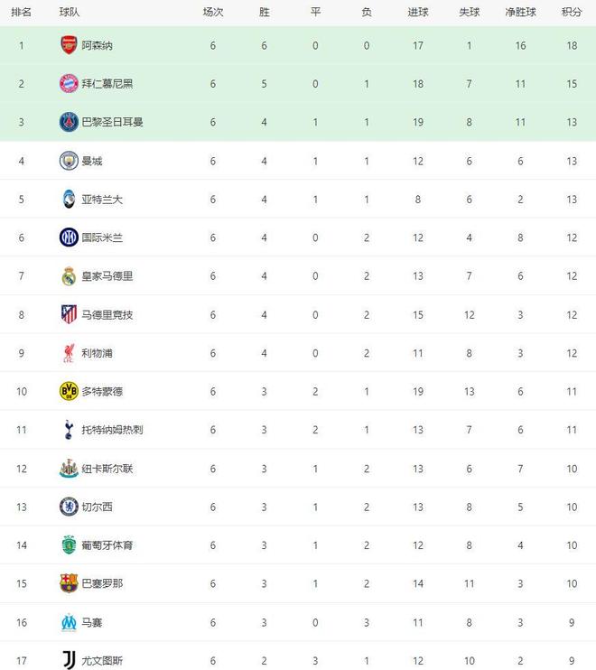 随着曼城21皇马,阿森纳30,欧冠最新积分榜:第3到第9只差1分