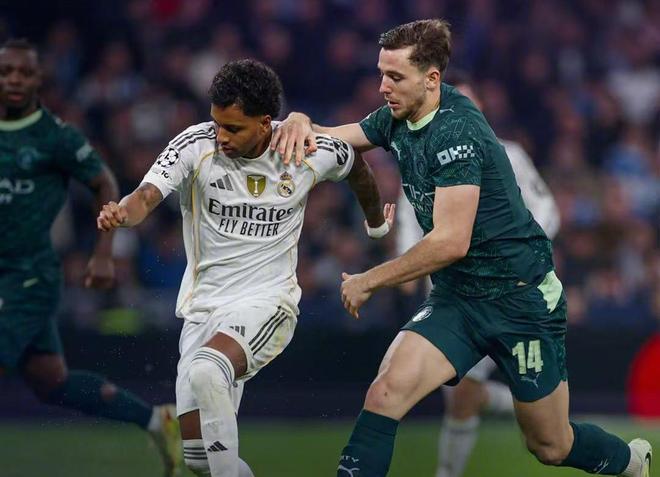 易边再战,两队展开对攻,双方门将成了场上主角,短时间内贡献多次精彩扑救!第70分钟,曼城连续换人,哈兰德、福登、谢尔基均被换下,马尔穆什、萨维尼奥、赖因德斯披挂上阵。第79分钟,维尼修斯禁区内后点凌空垫射将球踢飞!第85分钟,皇家马德里球员恩德里克头球攻门,足球擦着横梁飞出底线!最终全场比赛结束,皇家马德里主场1-2不敌曼城,曼城的欧冠积分来到了13分。哈兰德又破欧冠历史纪录