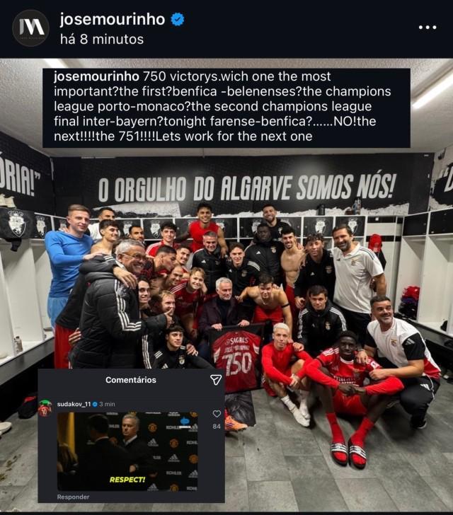 • 750胜场里程碑,穆帅社媒:最重要的胜利永远是下一场