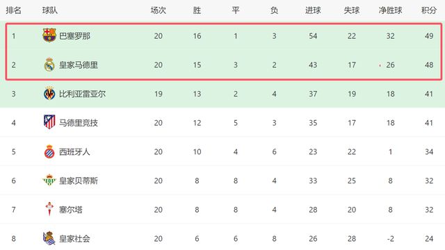 西甲最新积分战报巴萨11连胜被终止下半程刚开始只领先皇马1分