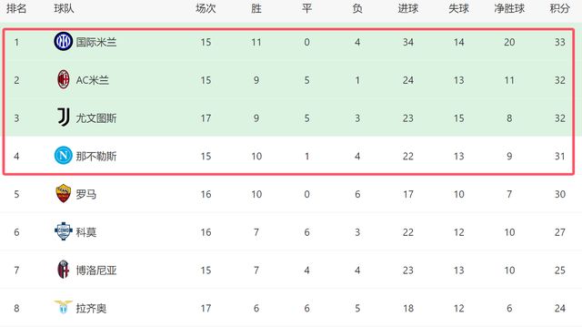 • 意甲最新积分战报尤文3连胜追上AC米兰差国米1分冲进前3