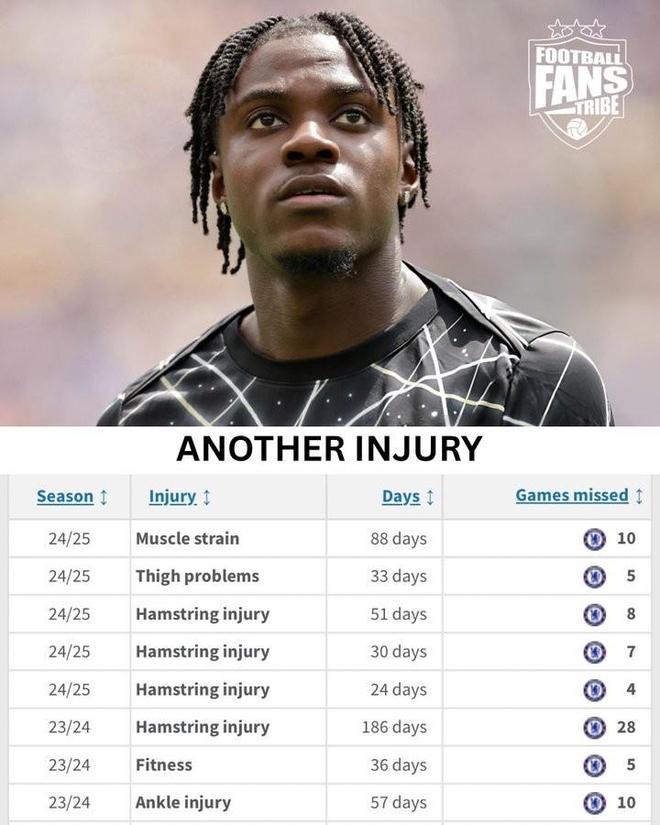 在今天凌晨进行的欧冠联赛阶段第4轮比赛中,切尔西客场2-2战平卡拉巴赫,其中拉维亚在首发出战8分钟后因伤被换下。根据统计,自从加盟切尔西以来,拉维亚已经遭遇了9次伤病,并且从未代表球队打满90分钟。拉维亚切尔西生涯伤病史(由近及远):25-26赛季 未知24-25赛季 肌肉拉伤 缺席88天10场比赛24-25赛季 大腿问题 缺席33天5场比赛24-25赛季 腘绳肌损伤 缺席51天8场比赛24-25赛季 腘绳肌损伤 缺席30天7场比赛24-25赛季 腘绳肌损伤 缺席24天4场比赛23-24赛季 腘绳肌受伤 缺席186天28场比赛23-24赛季 健康问题 缺席36天5场比赛23-24赛季 脚踝损伤 缺席57天10场比赛【上咪咕独家看英超
