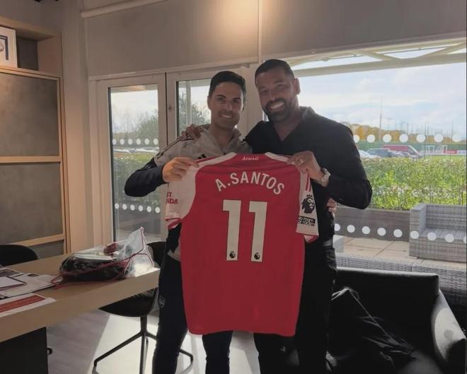 前阿森纳后卫桑托斯在阿森纳训练基地会见了前队友阿尔特塔。老朋友见面令人开心,不过桑托斯该不会是指导了几下防守吧……桑托斯其实效力阿森纳那段时间防守漏洞挺大的,但他进攻还不错,而且那场阿森纳5-3战胜切尔西的关键战力有进球,有一年争四的关键比赛他发挥了作用。没几个钱……说实话放到现在阿尔特塔都不会看桑托斯这种球员一眼,几百万的货,起到作用就不错了。