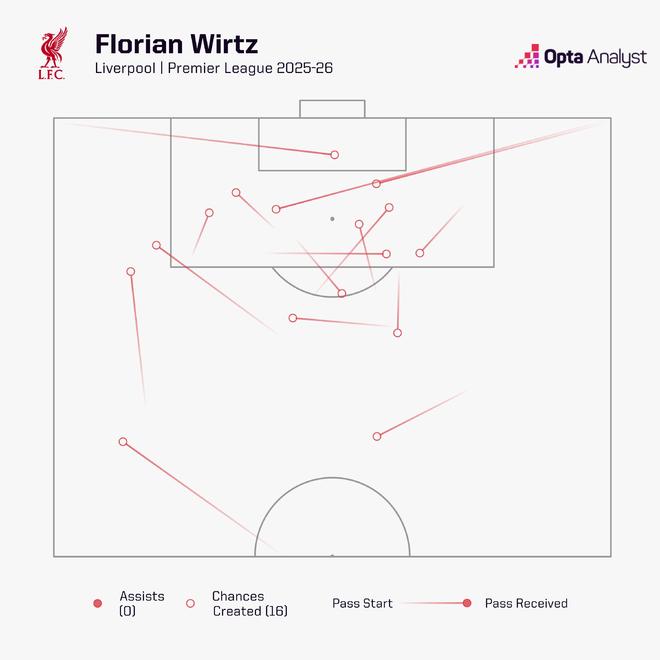 维尔茨英超射门+创造机会次数达28次,但进球、助攻均为零