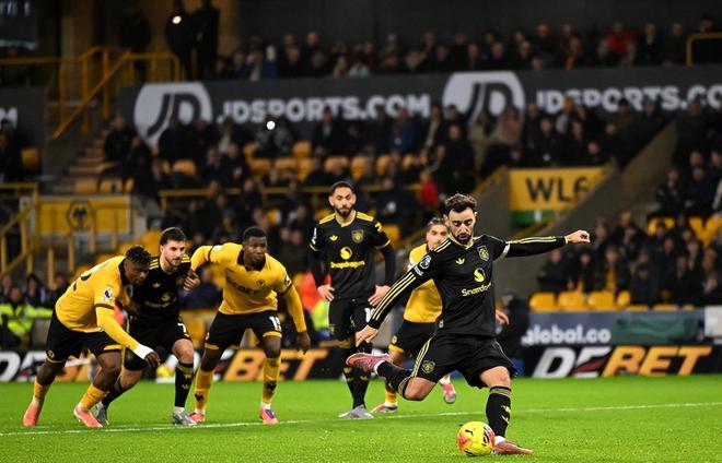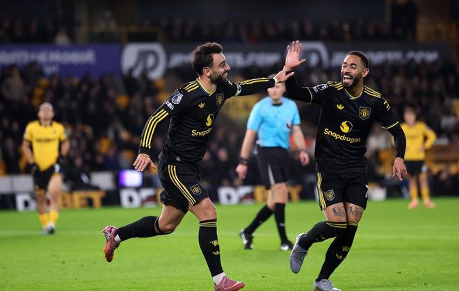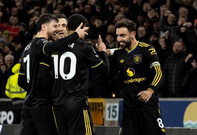 11月份以来,曼联又进入了上赛季起伏不定的状态,阿莫林的球队既能逼平热刺,战胜水晶宫,又能输给埃弗顿又被西汉姆绝平。北京时间12月9日凌晨,英超第15轮最后一场在曼联和狼队之间展开,B费独造3球,姆伯莫与芒特也各进一球,曼联4:1拿下3分,排名上升到第6位。狼队上赛季在前海港主帅佩雷拉的带领下堪堪保级,这赛季狼队成绩更为拉垮,前14轮过后仅仅拿到可怜的2分,佩雷拉不仅因此下课,新上任的爱德华兹也未能拿到首胜。此战库尼亚伤愈与芒特,姆伯莫搭档进攻线;B费、卡塞米罗双后腰;达洛特、迪亚洛分居双翼;卢克-肖、海文、马兹拉维联袂3后卫,门将是拉门斯。比赛开打后,曼联便占据主动权,第8分钟,达洛特左侧反越位接球杀入禁区小角度低射被约翰斯通扑出;第25分钟,曼联前场积极逼抢造成狼队回传失误,库尼亚再敲回中路,B费虽然意外滑倒但还是将球打进,1:0!B费英超生涯210次出场已打入65球,据统计,葡萄牙球员中只有C罗的进球数比他更多,C罗在英超为曼联出场236次打入103球。第29分钟,姆伯莫个人能力强突禁区低射被约翰斯通扑出,库尼亚补射又被莫斯克拉门线解围;第37分钟,迪亚洛右路内切摆脱打门,皮球被阿格巴杜封堵;半场结束前,曼联防线还是出现了空档;沃尔费左侧底线前倒三角回传,贝勒加德铲射破门,1:1!好在下半场回来后第51分钟,库尼亚中圈一脚贴地斜塞打穿了狼队防守,达洛特迅速跟进面对出击的门将无私横敲,姆伯莫面对空门轻松推射再次将比分反超,2:1!姆伯莫打进赛季第7球,只是这场比赛后,他就需要代表喀麦隆参加非洲杯。第62分钟,迪亚洛右侧倒三角回敲,B费劲射被约翰斯通扑出,曼联拿到二点球权,B费在其他队友支援到位后肋部精准传中,芒特反越位不停球抽射再进一球,3:1!第82分钟,迪亚洛角球进攻抽射,莫斯克拉禁区内明显用手阻挡,主裁判没有犹豫判罚黄点套餐,B费主罚命中,4:1!全场下来B费梅开二度外加一次助攻独造3球;本赛季英超出场15次4球6助,是哈兰德与伊戈尔-蒂亚戈后,第三位参与进球上双。最终曼联客场4:1拿下,15轮过后积分来到24分,已经追平了切尔西的分数,排名也从第12直接飙升到了第6位;目前英超15轮战罢后,从第4的水晶宫到第9的利物浦,分差只有3分。